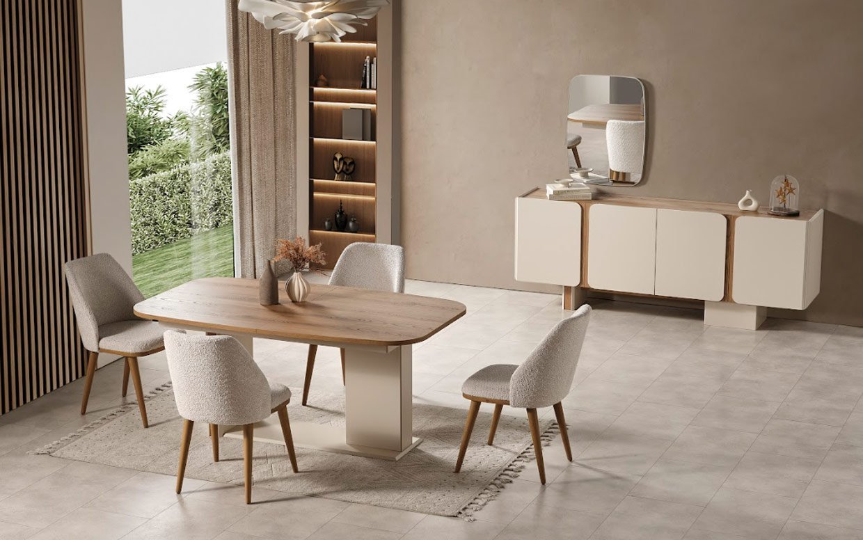 | Takım İçeriği | Yemek odası takım içeriği 1 adet konsol, 1 adet yemek masası ve 4 adet sandalye fiyatlandırmasıdır. |