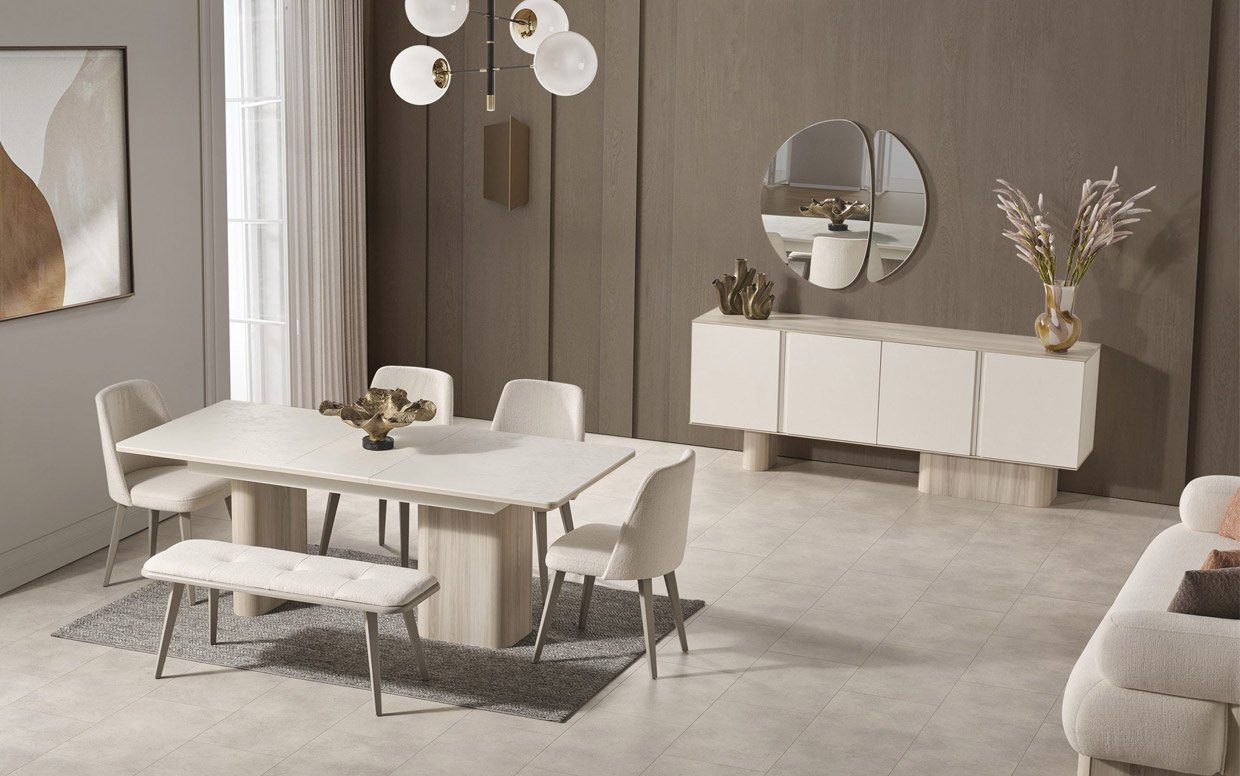 | Takım İçeriği | Yemek odası takım içeriği 1 adet konsol, 1 adet yemek masası ve 4 adet sandalye fiyatlandırmasıdır. |
