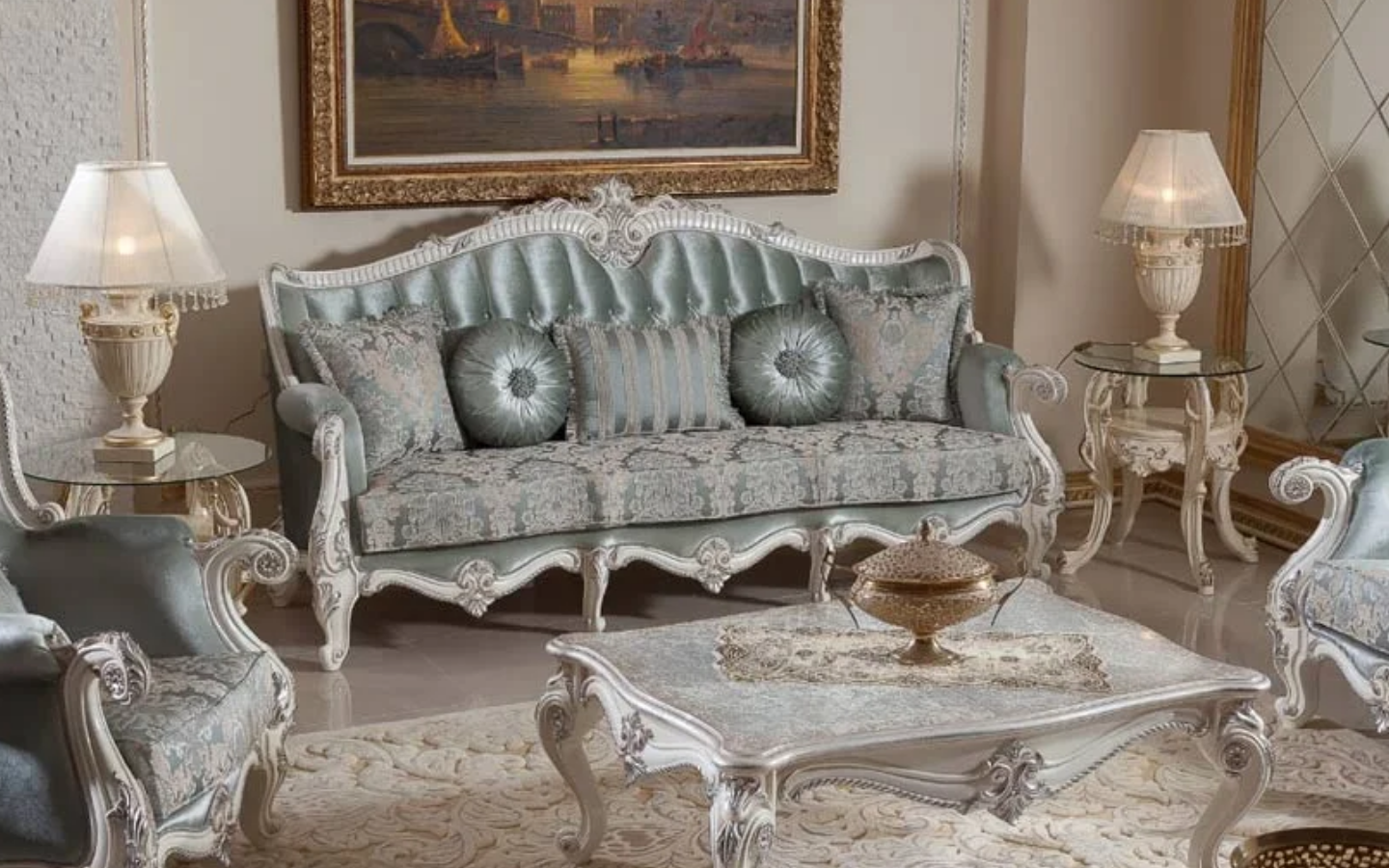 Hk İnci Klasik Beyaz Silver Üçlü Koltuk