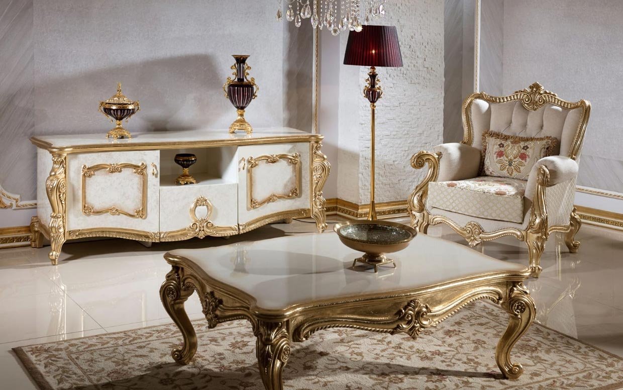 Hk İnci Klasik Krem Gold Tv Sehpası