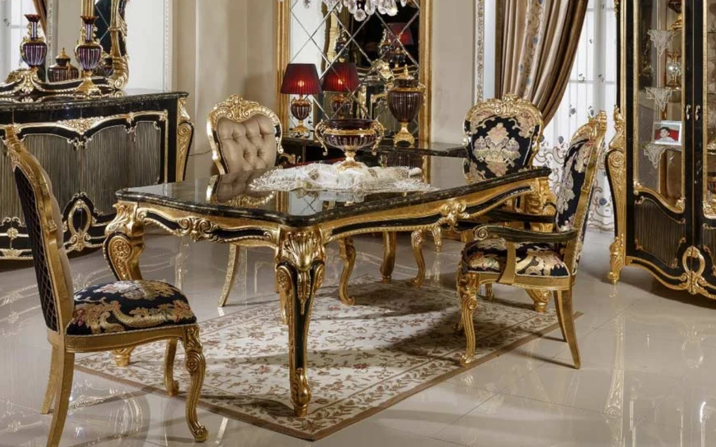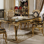 Hk İnci Klasik Siyah Gold Yemek Masası