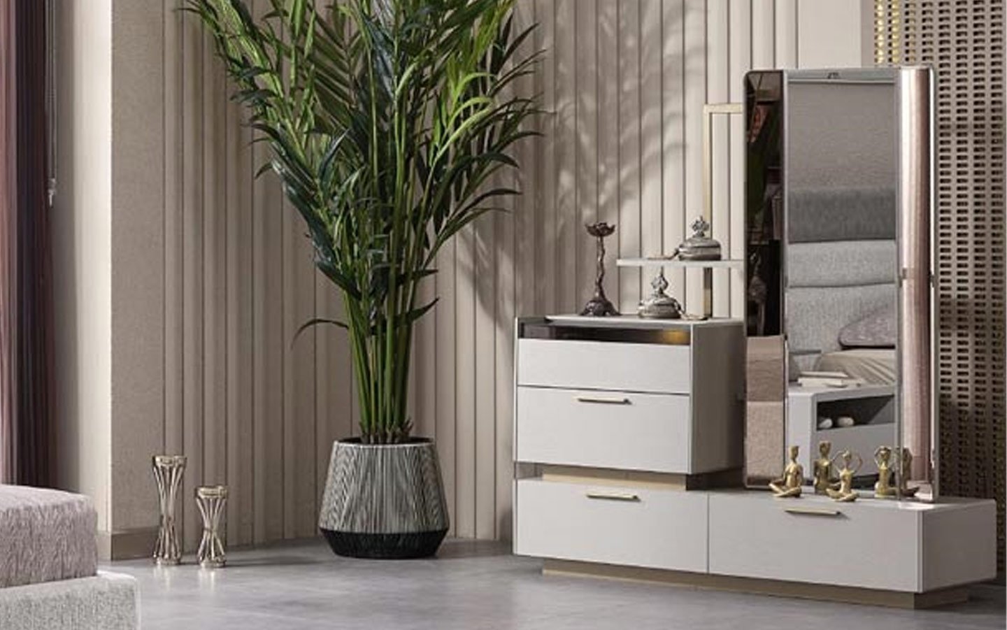 Takım İçeriğiYatak Odası takım içeriğinde 1 adet dolap, 1 adet başlıklı karyola, 2 adet komodin bulunmaktadır.