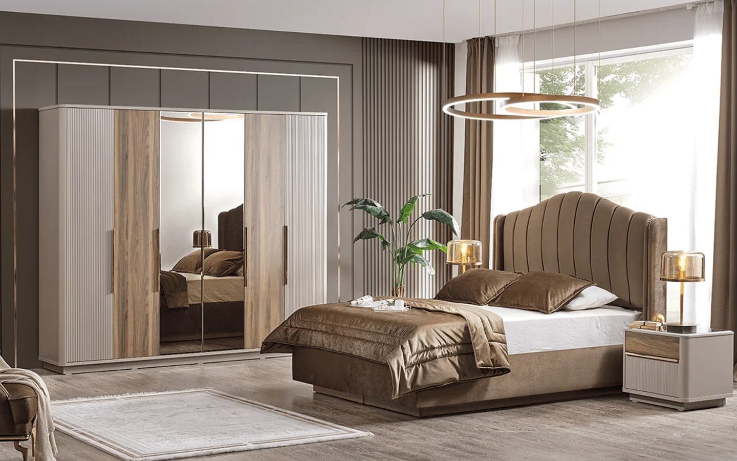 | Takım İçeriği | Yatak Odası takım içeriğinde 1 adet dolap, 1 adet başlıklı karyola, 2 adet komodin bulunmaktadır. |