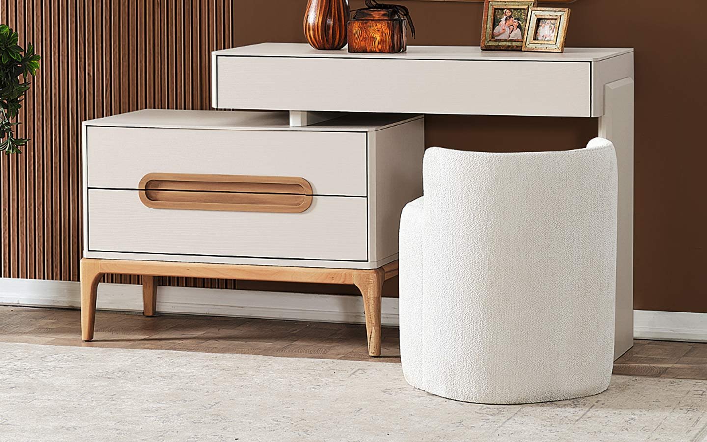 Takım İçeriğiYatak Odası takım içeriğinde 1 adet dolap, 1 adet başlıklı karyola, 2 adet komodin bulunmaktadır.