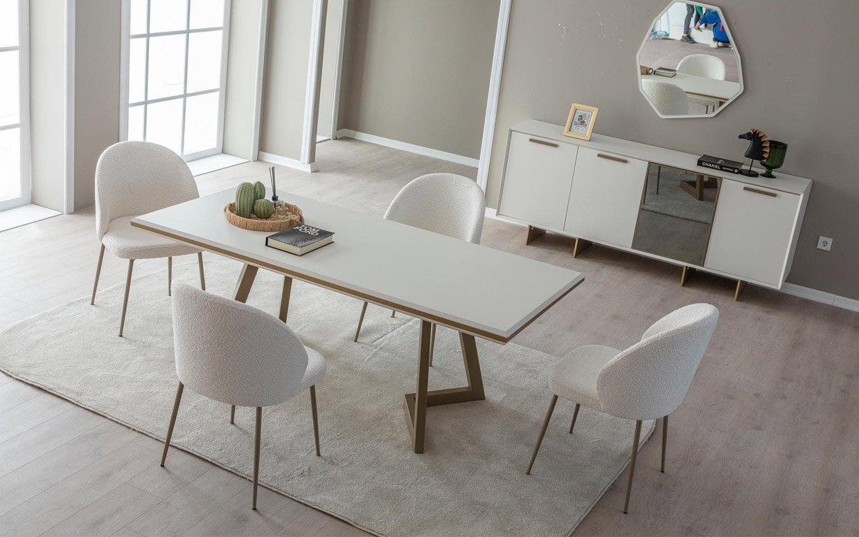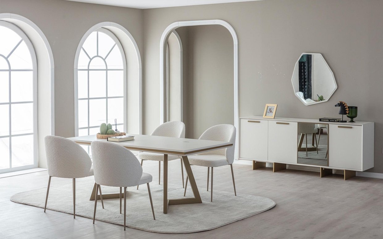 | Takım İçeriği | Yemek odası takım içeriği 1 adet konsol, 1 adet yemek masası ve 4 adet sandalye fiyatlandırmasıdır. |