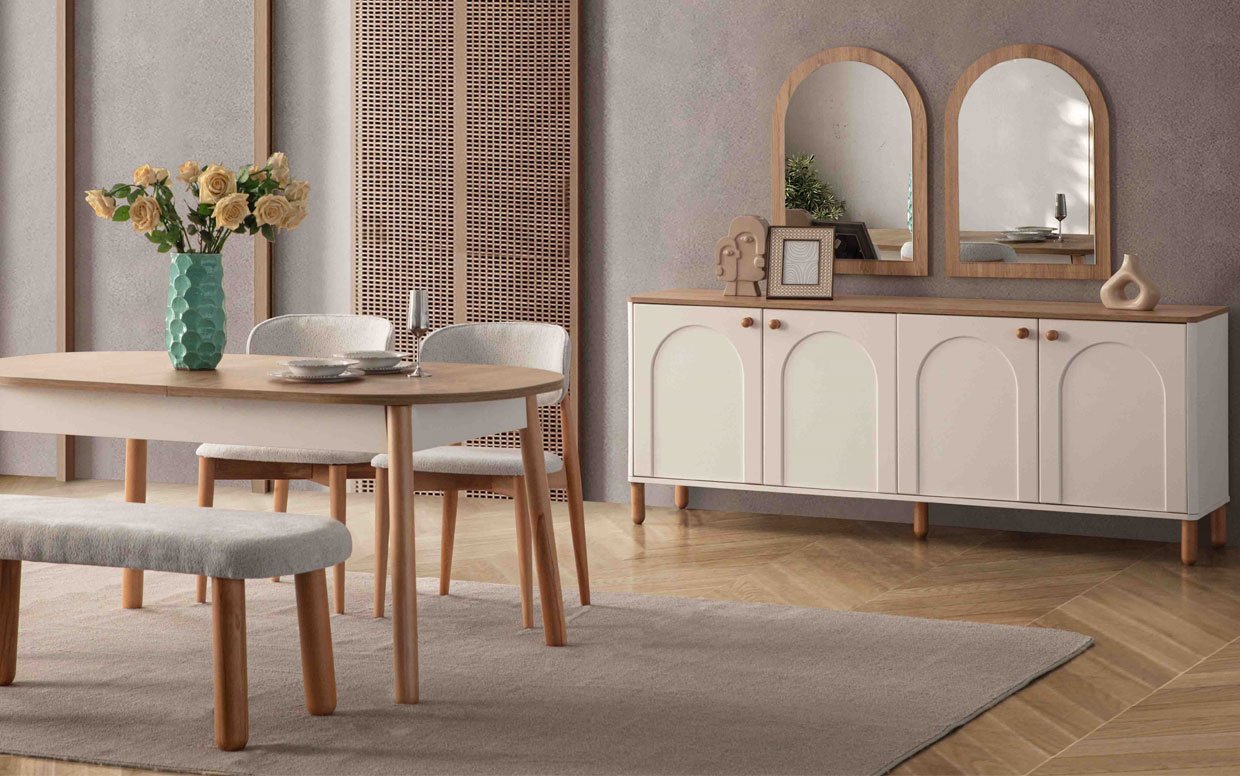 Takım İçeriğiYemek odası takım içeriği 1 adet konsol, 1 adet yemek masası ve 4 adet sandalye fiyatlandırmasıdır.
