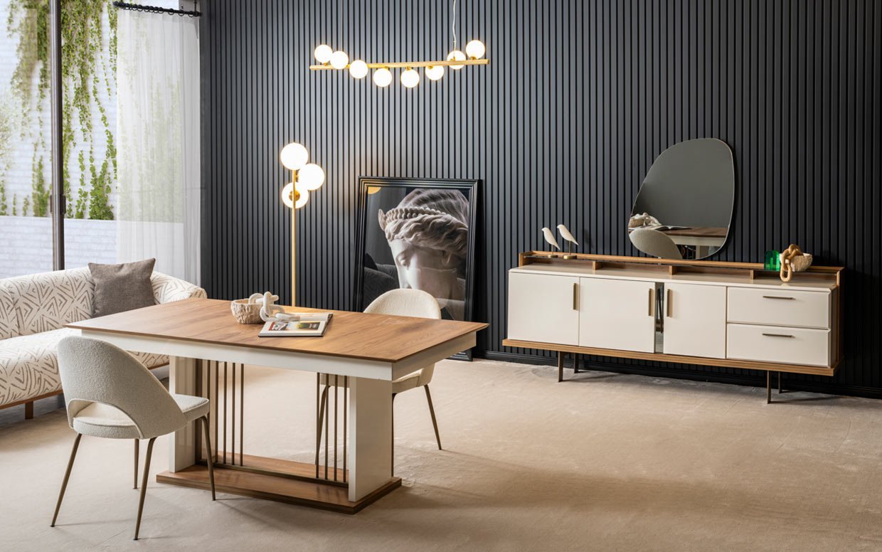 | Takım İçeriği | Yemek odası takım içeriği 1 adet konsol, 1 adet yemek masası ve 1 adet tv sehpası fiyatlandırmasıdır. |